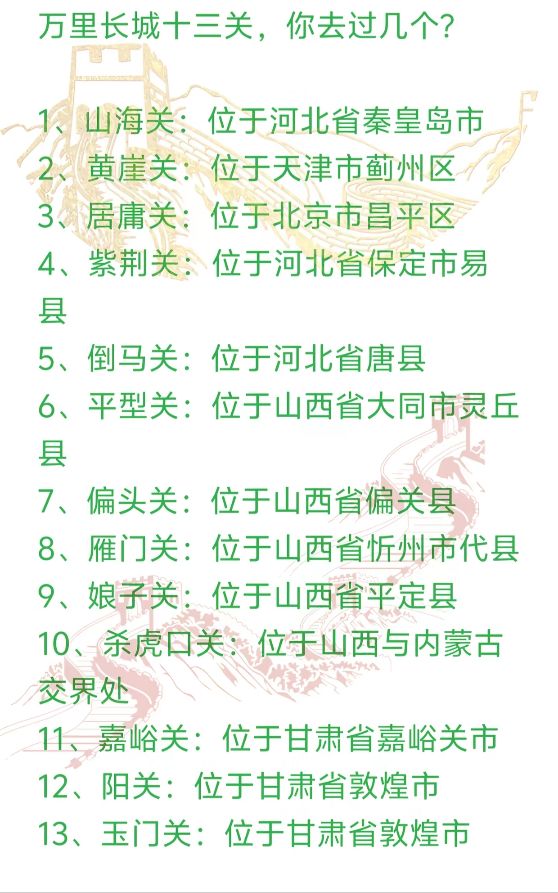 万里长城十三关都在那里